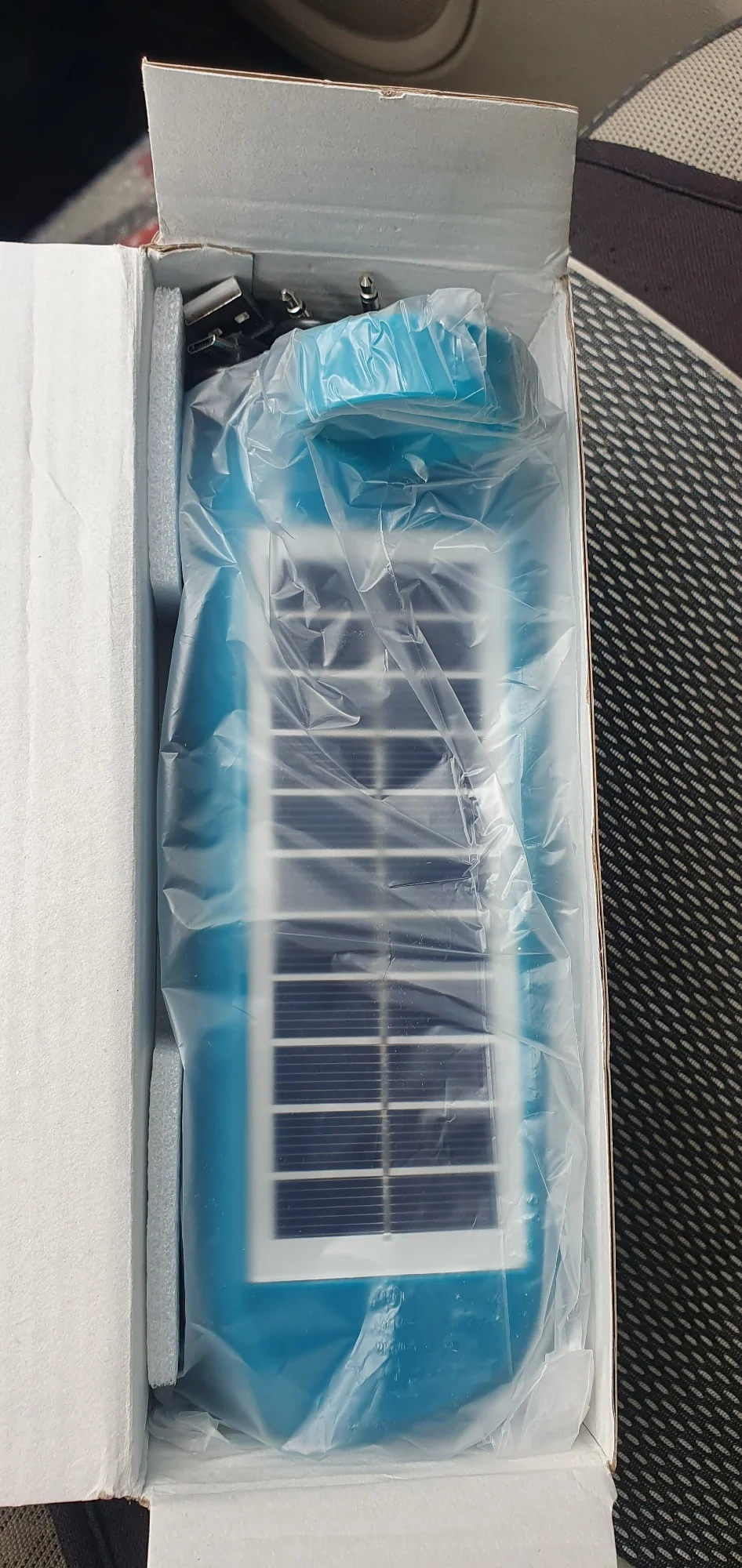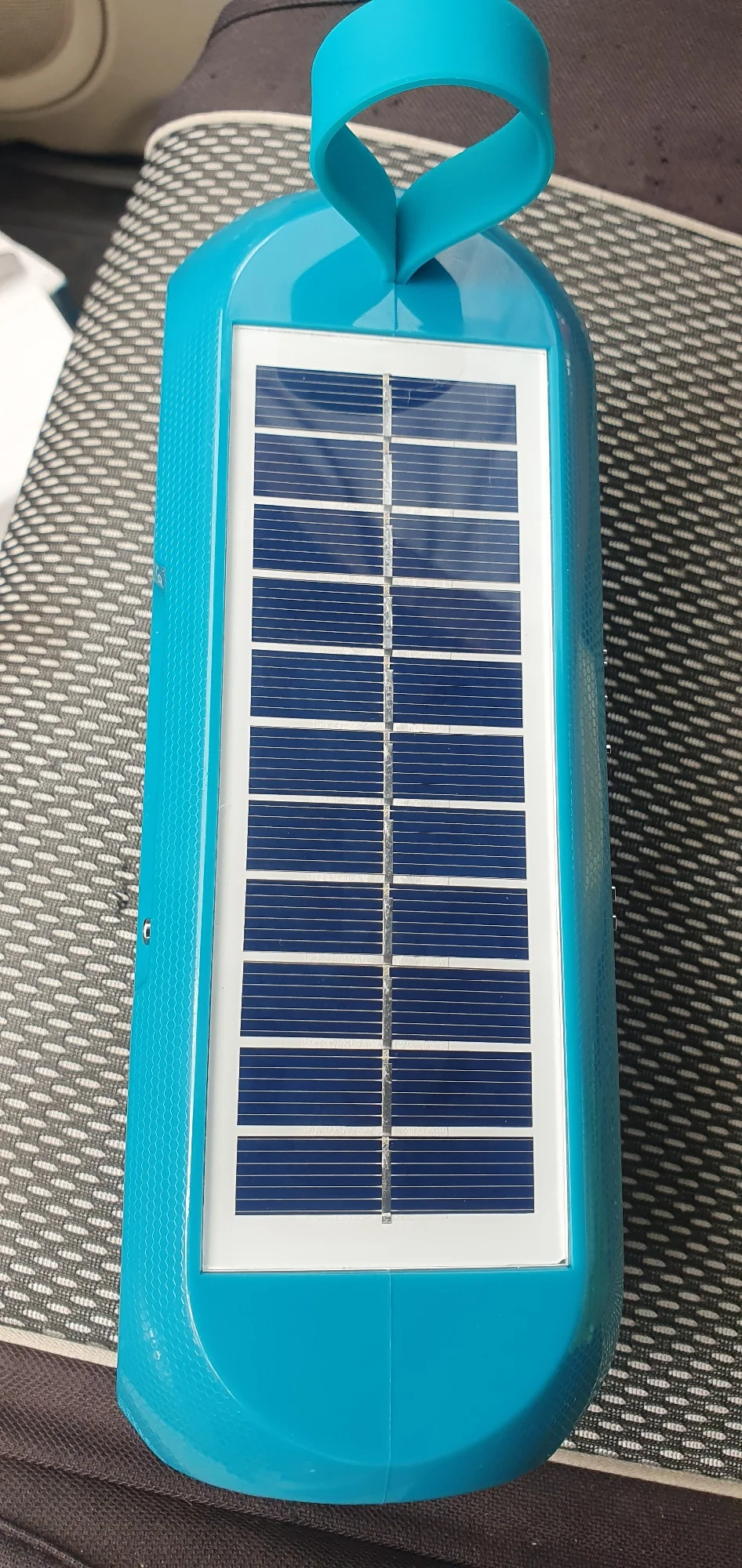 Solar charging, works. Sound, average.